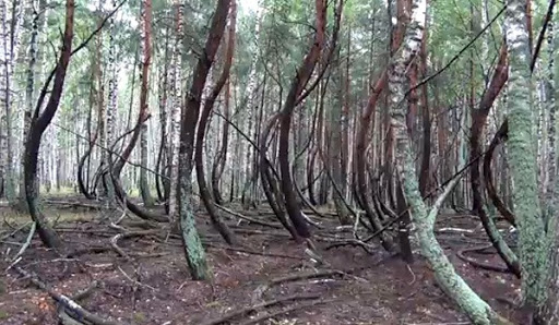 Trechos do bosque com árvores recurvadas de modo incomum podem ser encontradas também no oeste da Rússia, no litoral do mar Báltico, na região de Kaliningrado. E ali os cientistas também negam qualquer misticismo e falam que tudo se deve aos campos geomagnéticos.