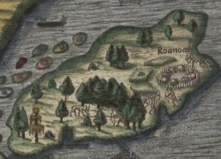 11. Ao desembarcar da pinaça na Ilha de Roanoke, acompanhado por 40 homens, John White esperava fazer contato com os quinze homens de Grenville e depois velejar para o norte em busca de um bom local para estabelecer a Cittie of Ralegh. Todavia, depararam-se com o forte devastado e nenhum sinal de seus habitantes, exceto o esqueleto de um deles. Pouco tempo depois, o barco rápido desaparecido na costa de Portugal chegou à ilha.