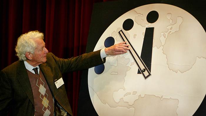 — Isto é sobre o fim da civilização como nós a conhecemos — disse Kennette Benedict, diretora-executiva do BAS. — A probabilidade de uma catástrofe global é muito alta, e as ações necessárias para reduzir os riscos são urgentes. As condições são tão ameaçadoras que estamos adiantando o relógio em dois minutos. Agora faltam três para a meia-noite.