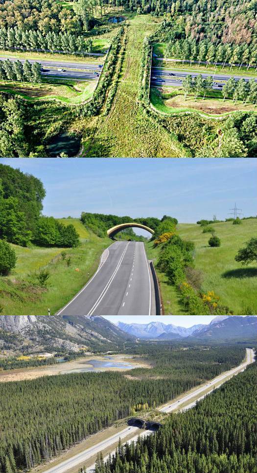 As pontes vivas também são conhecidas como eco-dutos, pontes verdes e viadutos de vida selvagem, e já podem ser vistas em diversos lugares do mundo. No Parque Nacional de Banff, no Canadá, por exemplo, existem atualmente 41 estruturas de travessia que ajudam na locomoção da fauna local e previnem acidentes na movimentada rodovia Trans-Canada. Desde sua inauguração, cerca de 11 espécies diferentes de grandes mamíferos já passaram pelas pontes mais de 200 mil vezes. A Holanda também decidiu implantar as passagens verdes em suas estradas e hoje já conta com mais de 600 passagens para animais – o que contribui até para a preservação de espécies ameaçadas e evita acidentes letais para humanos e animais.