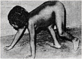 Quando foi descoberto, Bello andava como um chimpanzé, usando as pernas, mas os braços arrastando no chão. Durante a noite ele saltava sobre as coisas, quebrava e jogava coisas no dormitório, perturbando as outras crianças. Seis anos mais tarde Bello ficou muito mais calmo, mas ainda pula como um chimpanzé, faz ruídos específicos de chimpanzés, e bate as mãos em concha sobre a cabeça repetidamente. Bello morreu em 2005.
