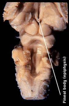 No embrião, a pineal começa a se formar como um verdadeiro olho, e depois é que degenera! Já está demonstrado que a glândula é sensível a luz, por conter fotorreceptores iguais aos presentes na retina dos olhos. Ela é um órgão cronobiológico, um relógio interno que capta as radiações do Sol e da Lua e dá ao organismo a referência de horário. Baseado nisso, ela produz o hormônio melatonina, que regula os instintos de acordar e dormir. Também produz naturalmente traços do químico dimetiltriptamina (ou DMT), que é alucinógeno (encontrado no chá Ayahuasca).