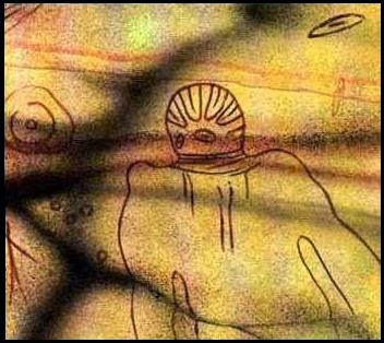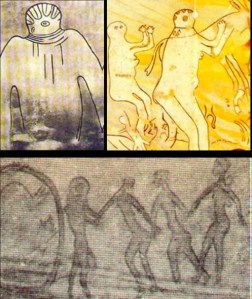 Dentre as mais de cinco mil pinturas rupestres encontradas na região de Tassili, no Saara, pesquisadas pelo francês Henri Lhote, muitas retratam estranhos seres envergando capacetes e roupas de astronautas. Lhote descreveu as imagens como de algumas figuras “marciana”. Alguns pesquisadores têm tido essa ideia literalmente de interpretar as figuras como antigos ‘visitantes interplanetários’ (teoria dos extraterrestres).