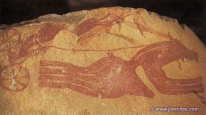 Pintura de um veículo idêntico ao usado pelos egípcios, puxados à cavalo, datada de cerca de 6 mil anos. Mas como poderia haver um desenho de algo se não existia o próprio Egito?
