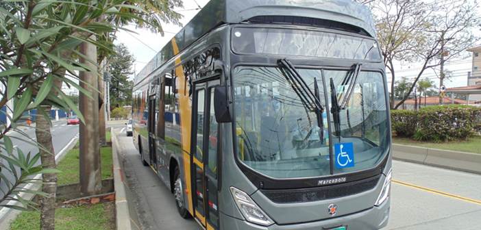 O primeiro ônibus 100% elétrico com tecnologia brasileira de baterias alimentadas por energia solar (fotovoltaicas) e desenvolvido com tecnologia brasileira começou a rodar em Florianópolis, SC, esta semana.