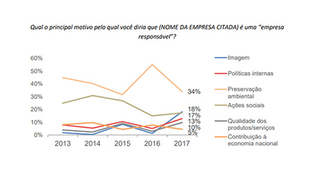 Consequentemente, os brasileiros passaram a reagir com indiferença diante da ideia de sustentabilidade corporativa atingindo um número recorde de pessoas que não conseguem identificar bons exemplos de cidadania corporativa. Em 2010, apenas um em cada cinco entrevistados (20,3%) recusava reconhecer ou não conseguia lembrar-se de um caso exemplar de responsabilidade social ou ambiental; em 2017 essa proporção estourou para dois em cada três consultados (67,2%) – o maior percentual já registrado.