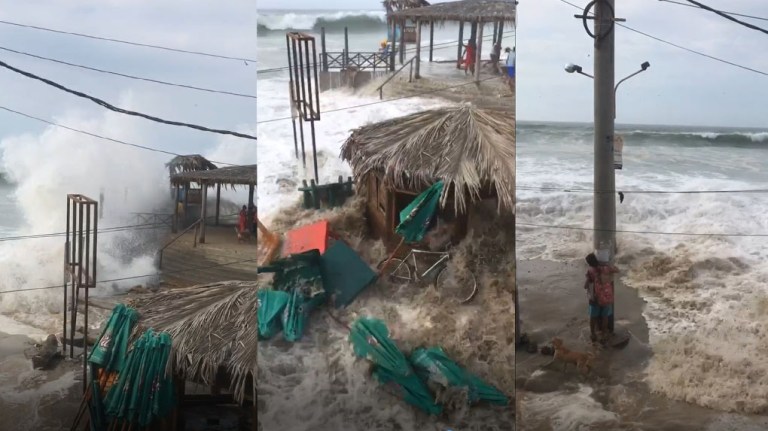 Dezenas de turistas levaram o susto de suas vidas quando ondas anormais e enormes de repente atingiram várias cidades costeiras perto de Mancora, na região de Piura, Peru, em 22 de dezembro de 2018.