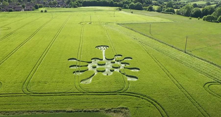 Será que os ETs finalmente querem nos ajudar dando a fórmula para vencer a Pandemia que tanta gente está a matar? Cientistas e ufólogos decifraram o novo Crop Circle aparecido no dia 29/5/2020 em Inglaterra: