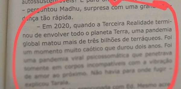 realmente fala sobre uma pandemia viral em 2020", postou a escritora Melissa Tobias em seu Facebook nesta segunda-feira, dia 30 de março. A página 183 de um de seus quatro livros viralizou em grupos de WhatsApp nos últimos dias por uma passagem em que descreve uma pandemia que obriga os seres humanos a praticar o... Continuar Lendo →